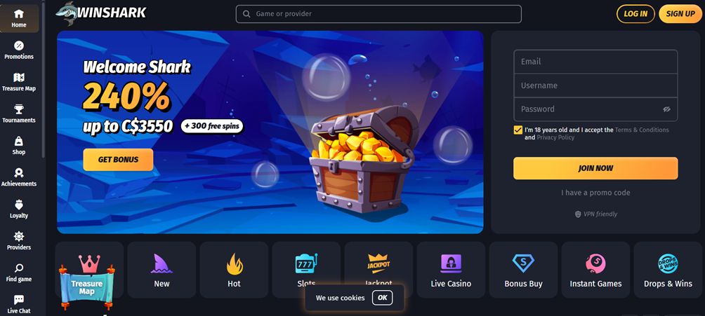 I came across Winshark when browsing for a site with better game filters. The first thing that stood out was how easy it was to sort slots by theme or feature – no endless scrolling. On my phone, the layout stayed neat, even when switching between games. Withdrawals through Interac took around two days the last time I tried, while an e-wallet cleared in under 24 hours.